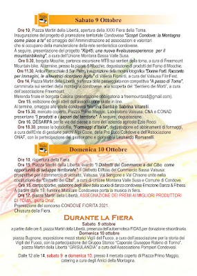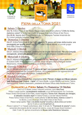 Ore 14, Piazza Martiri della Libertà, partenza della passeggiata non competitiva “A passo di Toma”, camminata sui sentieri della montagna condovese, alla scoperta del “Sentiero dei Morti”, a cura dell’associazione Freemount. Merenda finale in borgata Calcina.